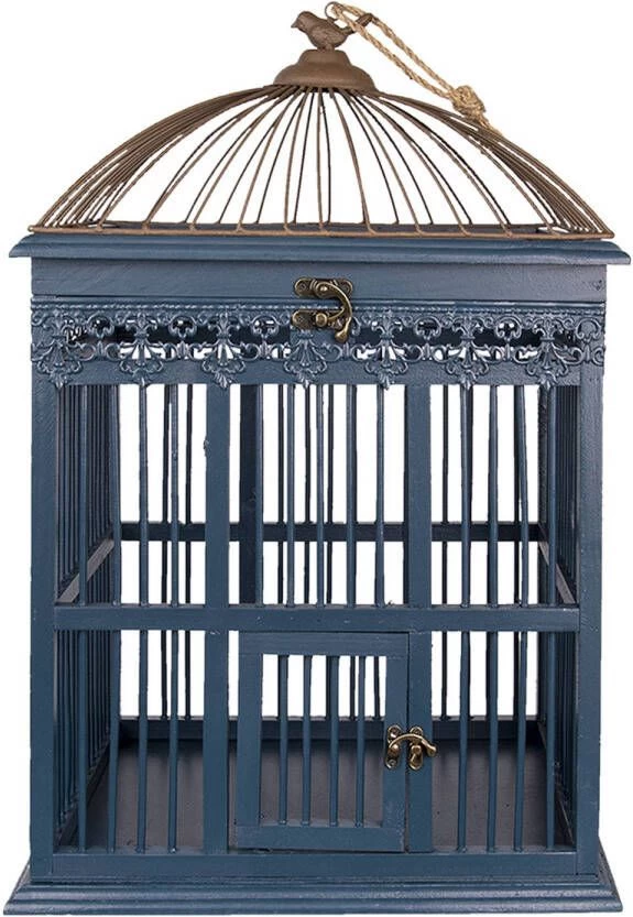 Clayre & Eef Vogelkooi Decoratie 40x32x60 Cm Blauw Hout Rechthoek Decoratie Vogelkooi Hangend Blauw Decoratie