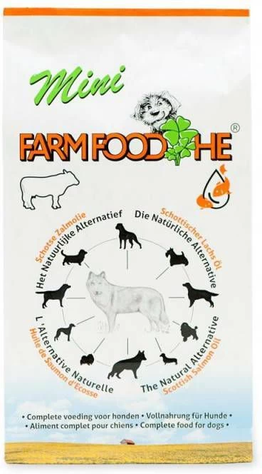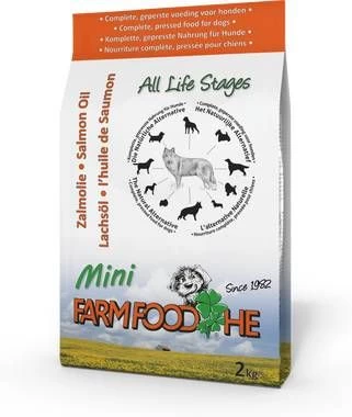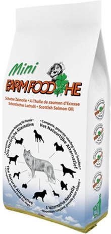 Farm Food HE Mini hondenvoer met Schotse Zalmolie (1%) is een volledige voeding die geschikt is voor alle (kleine) hondenrassen.