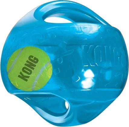 Deze felgekleurde Jumbler Ball van KONG is een twee-in-één speelbal! Dat betekent dubbel zoveel interactief speelplezier! In de Jumbler bal zit een ronddraaiende tennisbal en een opvallende pieper; deze combinatie zorgt voor onweerstaanbaar speelplezier. Je hond kan de bal gemakkelijk oppakken door de handvatten maar natuurlijk is dit ook voor het baasje ideaal! Samen spelen, schudden en trekken.