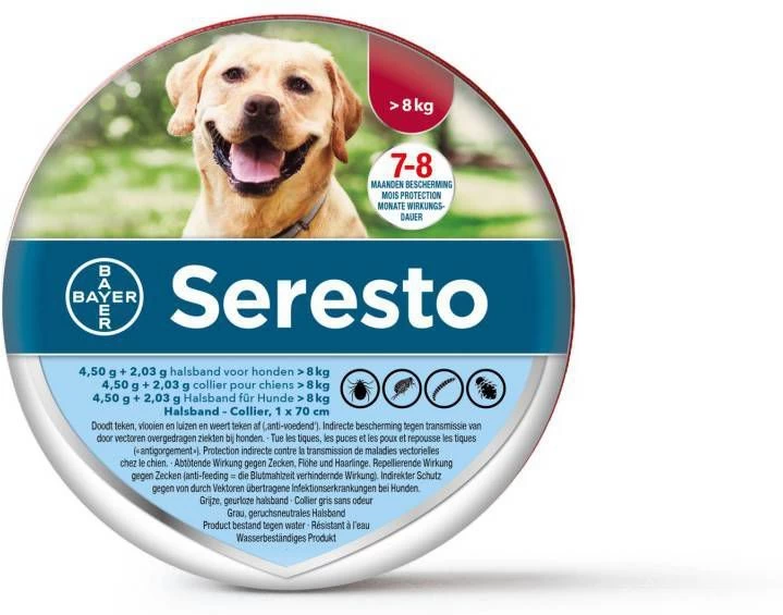 Seresto Halsband voor grote honden is een innovatieve vlooienband en is bedoeld voor honden met een gewicht van meer dan 8 kg.