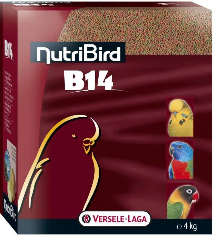 Nutribird B14 OnderhoudsvoederNutriBird B 14 is een uitgebalanceerd volledig onderhoudsvoeder voor grasparkieten en andere kleine parkieten. Ook geschikt voor agaporniden, neophema’s en forpussen. Indien uw vogel niet gewoon is aan korrelvoeding, moet de omschakeling naar dit nieuwe voeder geleidelijk gebeuren.