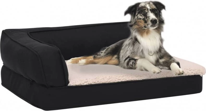 VidaXL Hondenbed Ergonomisch Linnen Look 90×64 Cm Fleece Zwart